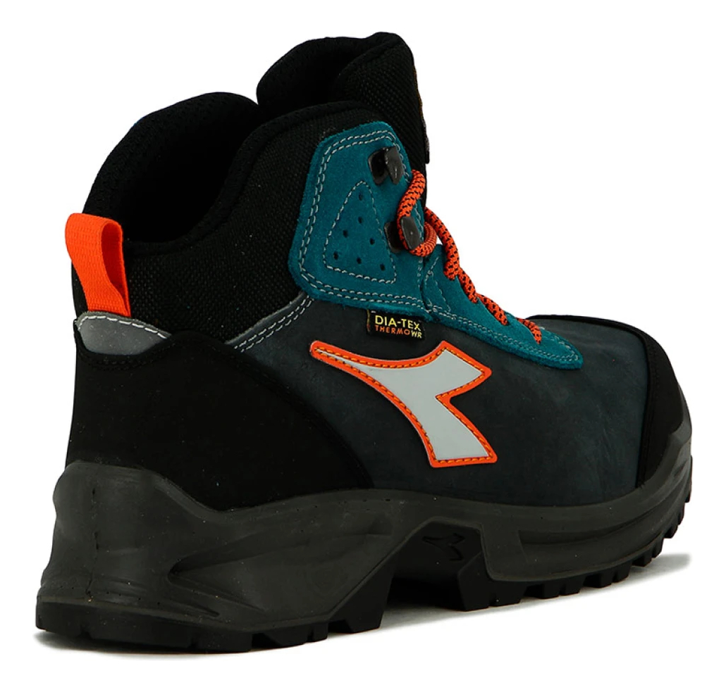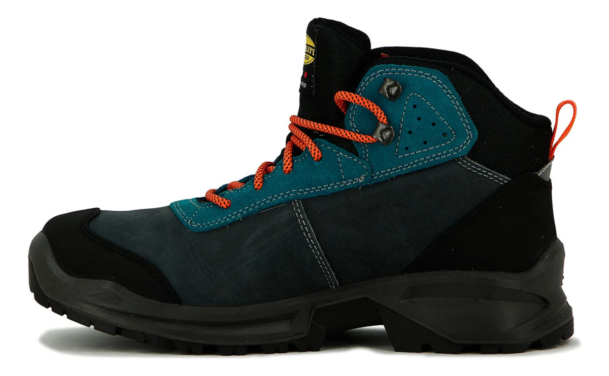 alzado de seguridad de media caña S3 piel de nobuk italiana pull-up impermeable y termoaislada y ante de serraje hidrófugo. Puntera y talón reforzados con película IT poliuretano termoplástico. Membrana DIA-tex. Puntera de aluminio 200J. Ajuste 11. Inserción antiperforación K SOLE. Plantilla transpirable extraíble microperforada de PU foam con carbones activos. Género: Adulto unisex