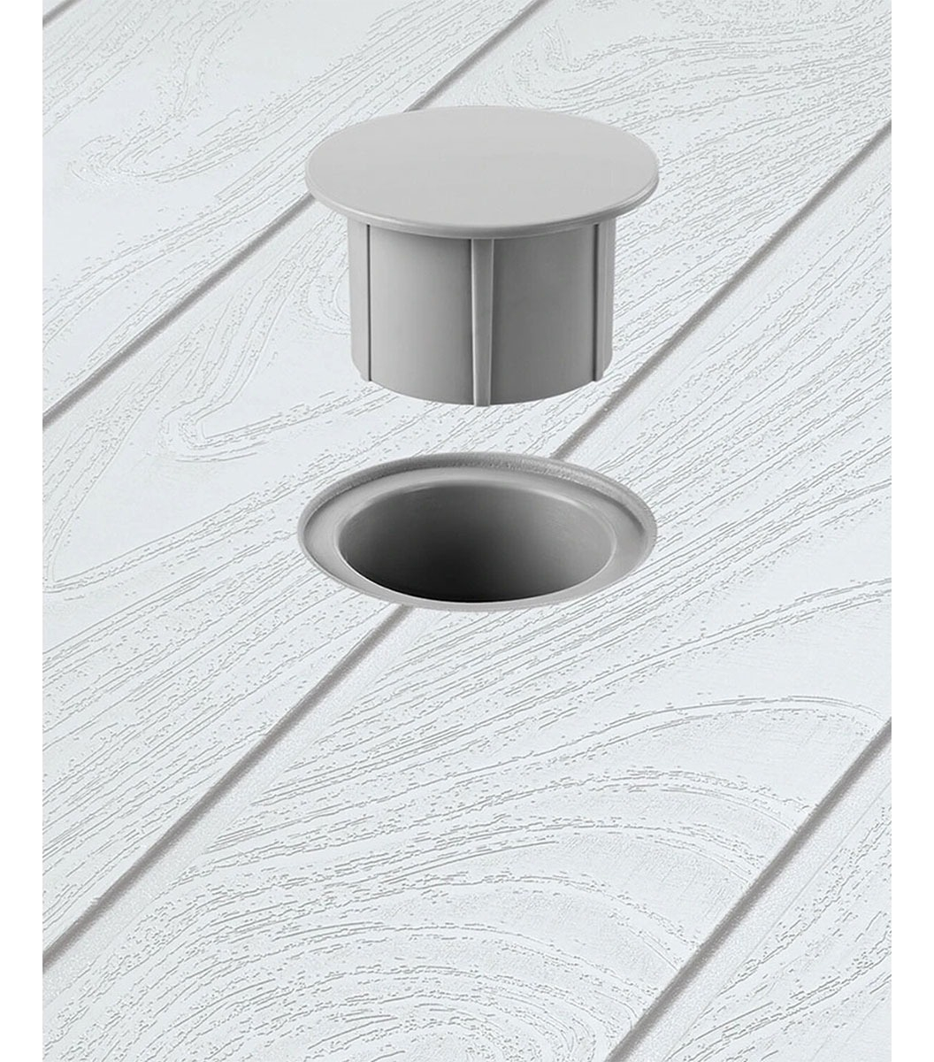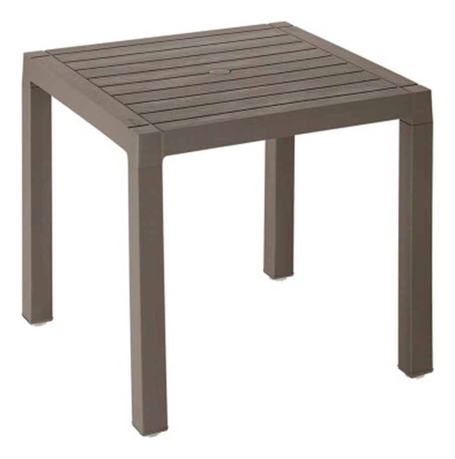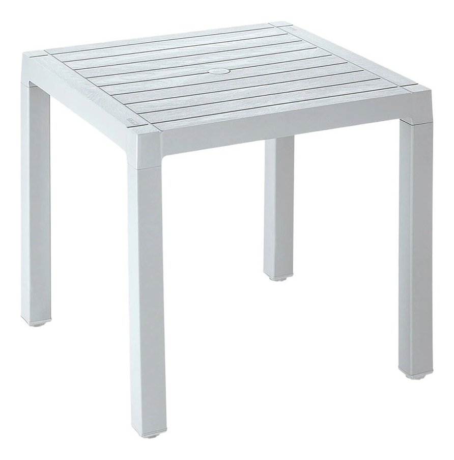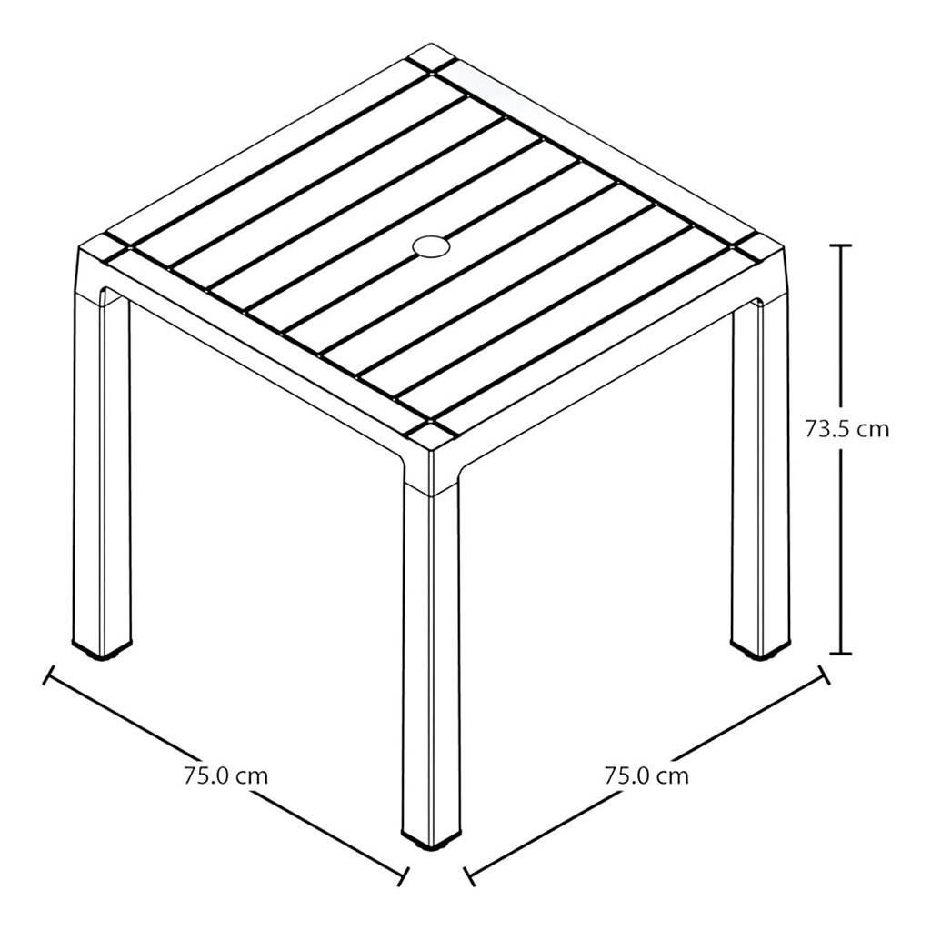 La Mesa Barú color gris hielo está fabricada en resina, un material resistente al agua y que permite una mayor duración del producto.