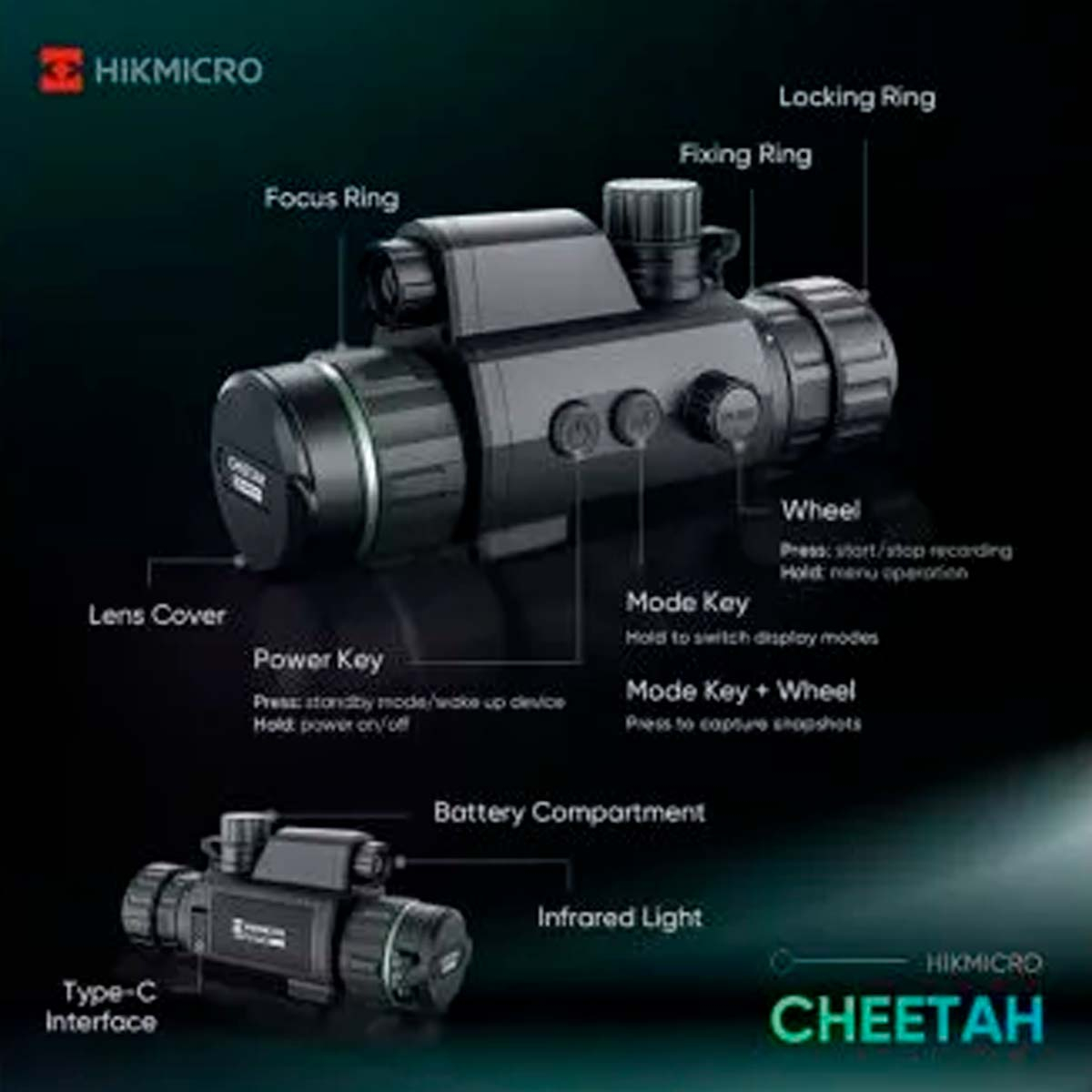 El Hikmicro Cheetah C32F RFL + Rail es una variante avanzada del monocular de vision nocturna Cheetah C32F, diseñado para aplicaciones de caza y observación en condiciones de baja luminosidad. Aquí tienes una breve reseña sobre este modelo específico: